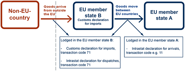 Quasi-imports and quasi-exports are rare, and codes 71 and 72 are used only in exceptional cases. Regular imports or exports do not fall under this category. Quasi-trade is not considered actual trade for the Member State through which the goods pass, and therefore it should be identified and attributed to the correct Member State in statistics. The nature of transactions 71 and 72 serve as one method of identifying quasi-trade in both customs data and intra-EU trade statistics.